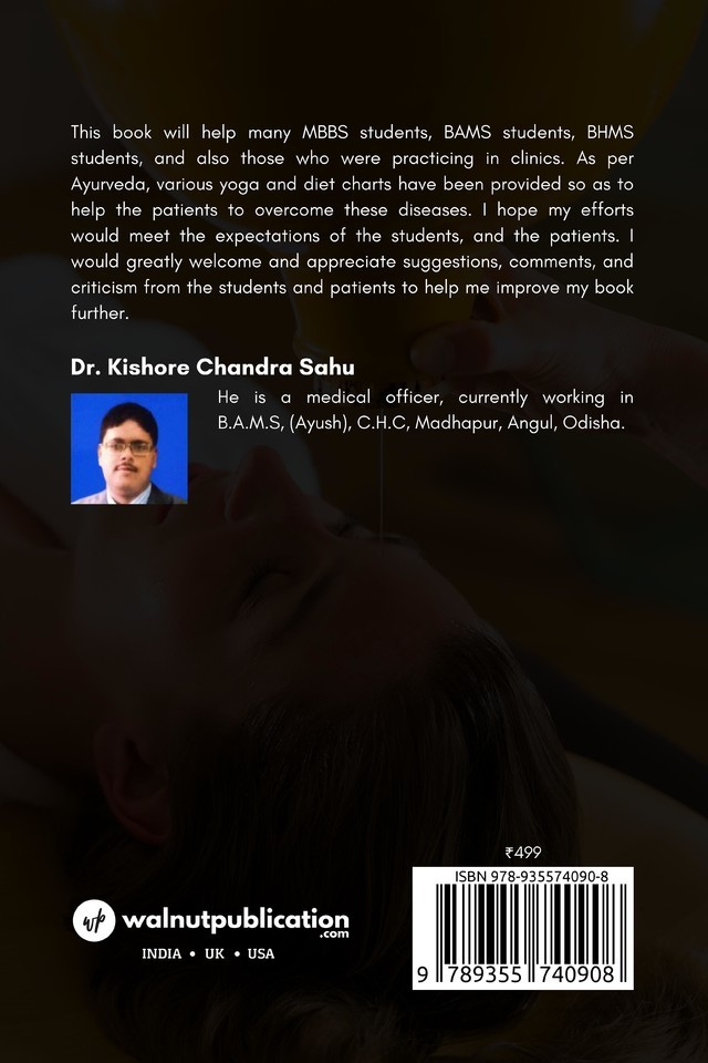 This book will help many MBBS students, BAMS students, BHMS students, and also those who were practicing in clinics. As per Ayurveda, various yoga and diet charts have been provided so as to help the patients to overcome these diseases.