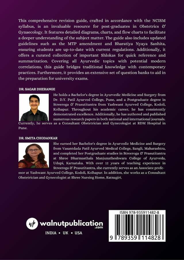 This revision guide aligns with the NCISM syllabus and serves as an essential tool for post-graduates in Obstetrics & Gynaecology. Featuring comprehensive diagrams and updated guidelines, including the MTP amendment, it keeps students informed on current regulations. It also offers a selection of significant Shlokas for quick reference and connects Ayurvedic topics with modern practices. Additionally, it includes an extensive question bank to support university exam preparation.