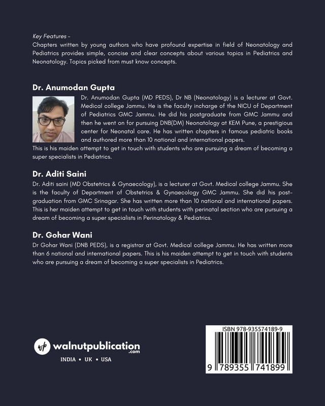 Chapters written by young authors who have profound expertise in field of Neonatology and Pediatrics provides simple, concise and clear concepts about various topics in Pediatrics and Neonatology.