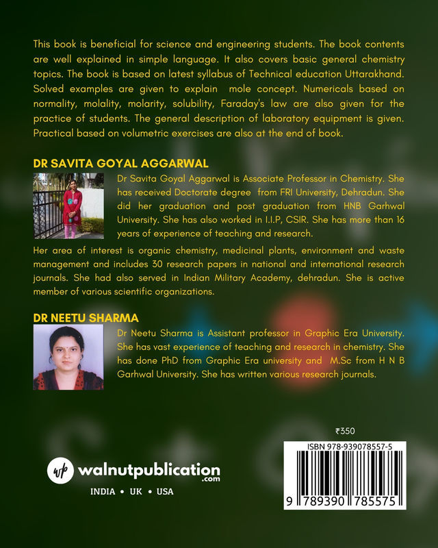 This book is beneficial for science and engineering students. The book contents are well explained in simple language. It also covers basic general chemistry topics. The book is based on latest syllabus of Technical education Uttarakhand.