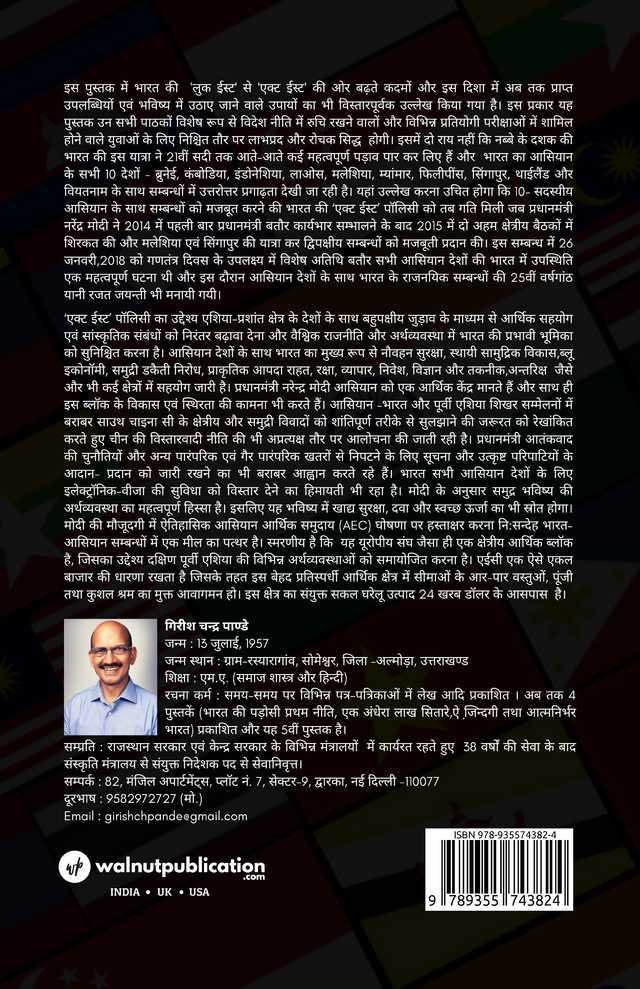 इस पुस्तक में भारत की ‘लुक ईस्ट’ से ‘एक्ट ईस्ट’ की ओर बढ़ते कदमों और इस दिशा में अब तक प्राप्त उपलब्धियों एवं भविष्य में उठाए जाने वाले उपायों का भी विस्तारपूर्वक उल्लेख किया गया है। इस प्रकार यह पुस्तक उन सभी पाठकों विशेष रूप से विदेश नीति में रुचि रखने वालों और विभिन्न प्रतियोगी परीक्षाओं में शामिल होने वाले युवाओं के लिए निश्चित तौर पर लाभप्रद और रोचक सिद्ध होगी। इसमें दो राय नहीं कि नब्बे के दशक की भारत की इस यात्रा ने 21वीं सदी तक आते-आते कई महत्वपूर्ण पड़ाव पार कर लिए हैं और भारत का आसियान के सभी 10 देशों – ब्रुनेई, कंबोडिया, इंडोनेशिया, लाओस, मलेशिया, म्यांमार, फिलीपींस, सिंगापुर, थाईलैंड और वियतनाम के साथ सम्बन्धों में उत्तरोत्तर प्रगाढ़ता देखी जा रही है। यहां उल्लेख करना उचित होगा कि 10- सदस्यीय आसियान के साथ सम्बन्धों को मजबूत करने की भारत की ‘एक्ट ईस्ट’ पॉलिसी को तब गति मिली जब प्रधानमंत्री नरेंद्र मोदी ने 2014 में पहली बार प्रधानमंत्री बतौर कार्यभार सम्भालने के बाद 2015 में दो अहम क्षेत्रीय बैठकों में शिरकत की और मलेशिया एवं सिंगापुर की यात्रा कर द्विपक्षीय सम्बन्धों को मजबूती प्रदान की। इस सम्बन्ध में 26 जनवरी,2018 को गणतंत्र दिवस के उपलक्ष्य में विशेष अतिथि बतौर सभी आसियान देशों की भारत में उपस्थिति एक महत्वपूर्ण घटना थी और इस दौरान आसियान देशों के साथ भारत के राजनयिक सम्बन्धों की 25वीं वर्षगांठ यानी रजत जयन्ती भी मनायी गयी।