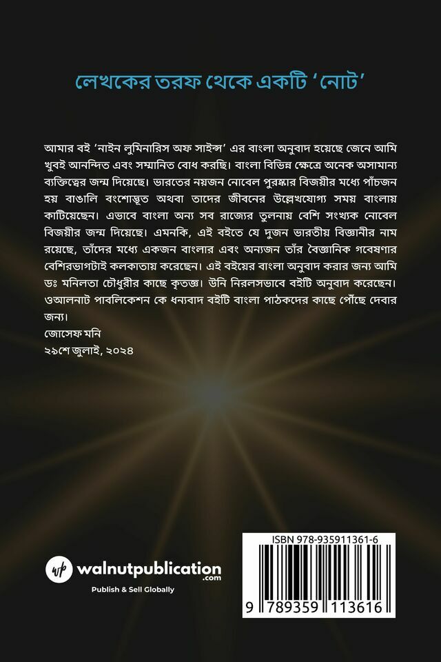 This book contains short essays on nine well-known scientists: Copernicus, Galileo, Newton, Curie, Bose, Einstein, Raman, Feynman and Hawking.