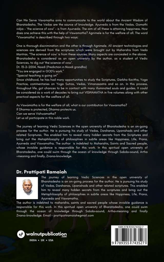 Can We Serve Visvamatha aims to communicate to the world about the Ancient Wisdom of Bharatadesha. The Vedas are the source of knowledge. Ayurveda is from the Vedas. Gomathi Vidya – ‘the science of cow’ – is from Ayurveda. The aim of all these is attaining happiness. How does one achieve this with the help of Viswamatha? Agnimele is for the welfare of all. The word “Viswamatha’ is described through two ways: One is thorough discrimination and the other is through Agnimele.