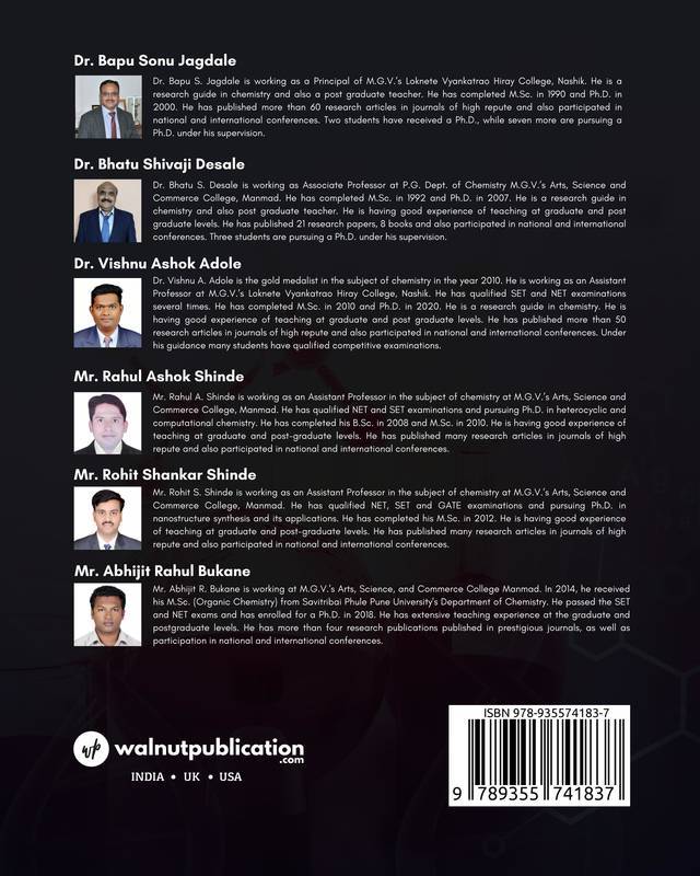Our Chemistry Concepts Through MCQ Approach book is a MCQs based book and it is designed for Undergraduate chemistry students. This book is intended to enable students to prioritize and plan their learning through regular practice. The content of this book has evolved from the New Revised Choice Based Credit System (CBCS) syllabus of Savitribai Phule Pune University Pune from June 2021. As the latest trend of education is the teaching through multiple choice questions and this book provides large number of multiple-choice questions on the chemistry subject. This book will be useful for the students of T.Y.B.Sc. chemistry for semester-V subjects. We have framed large number of MCQs on every sub topic included in the curriculum. This book will not only assist students with MCQs of T.Y.B.Sc. chemistry but will also help them prepare for various competitive examinations in chemistry. This book includes very useful multiple-choice questions with their correct answers subject-wise and also chapter-wise.
