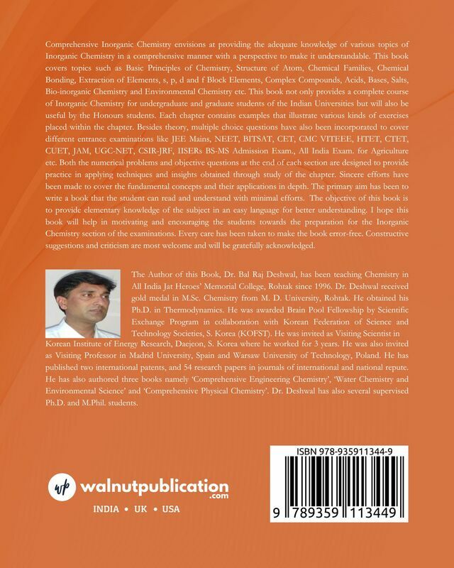 Comprehensive Inorganic Chemistry aims to offer a thorough understanding of various topics in Inorganic Chemistry in a clear and accessible manner. This textbook covers essential subjects such as Basic Principles of Chemistry, Atomic Structure, Chemical Families, Chemical Bonding, Extraction of Elements, s, p, d, and f Block Elements, Complex Compounds, Acids, Bases, Salts, Bio-inorganic Chemistry, and Environmental Chemistry.