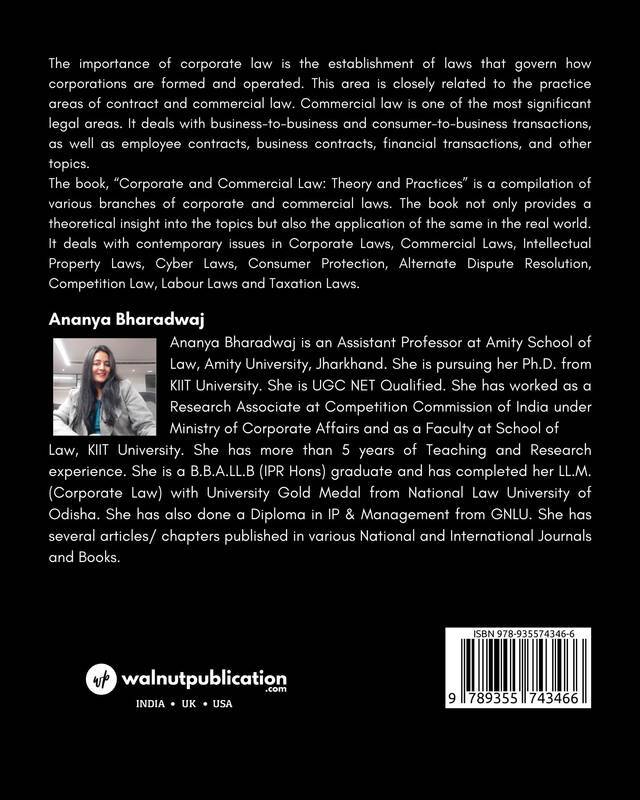 The book, “Corporate and Commercial Law: Theory and Practices” is a compilation of various branches of corporate and commercial laws. The book not only provides a theoretical insight into the topics but also the application of the same in the real world. It deals with contemporary issues in Corporate Laws, Commercial Laws, Intellectual Property Laws, Cyber Laws, Consumer Protection, Alternate Dispute Resolution, Competition Law, Labour Laws and Taxation Laws.