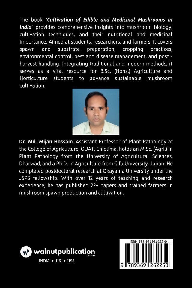 The book “Cultivation of Edible and Medicinal Mushrooms in India” provides comprehensive insights into mushroom biology, cultivation techniques, and their nutritional and medicinal importance. Aimed at students, researchers, and farmers, it covers spawn and substrate preparation, cropping practices, environmental control, pest and disease management, and post -harvest handling.