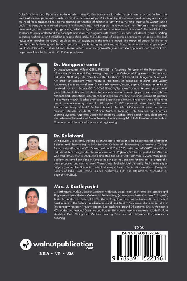 Data Structures and Algorithms Implementation using C, this book aims to cater to beginners who look to learn the practical knowledge on data structure and C in the same wings.