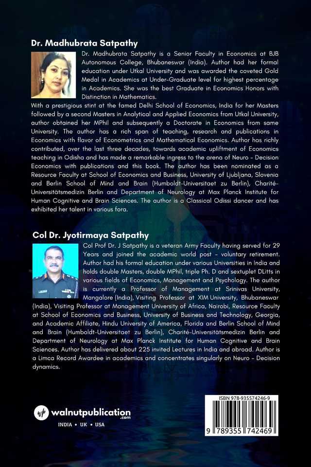 This book is a humble offering to the inter – disciplinary enthusiasts as to how to fall in love with Decision Economics. Attempt meanders astride complex interrelationships between neural apparatuses and calculations of these from social and economic upshots. Currently, the real-world applications and predictions of Neuroeconomics are still unknown or under-developed as the burgeoning field continues to grow. Some criticisms have been made that the accumulation of research and its findings have so far produced little in the way of pertinent recommendations to economic policy-makers. But, many Neuroeconomists insist that the potential of the field to enhance our understanding of brain’s machinations with decision-making may prove highly influential in future’.