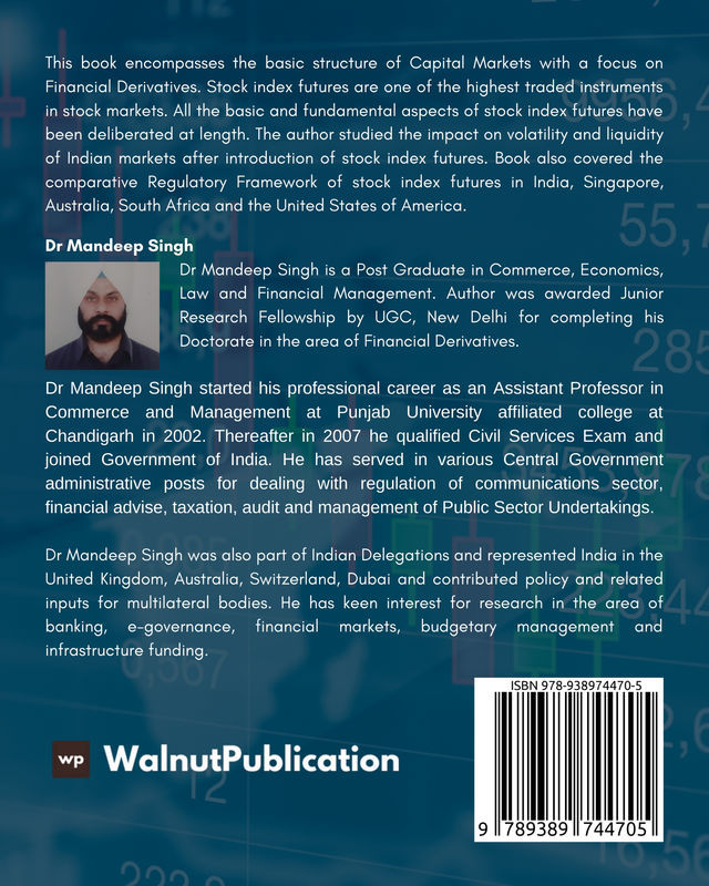 This book encompasses the basic structure of Capital Markets with a focus on Financial Derivatives. Stock index futures are one of the highest traded instruments in stock markets. All the basic and fundamental aspects of stock index futures have been deliberated at length. The author studied the impact on volatility and liquidity of Indian markets after introduction of stock index futures. Book also covered the comparative Regulatory Framework of stock index futures in India, Singapore, Australia, South Africa and the United States of America.