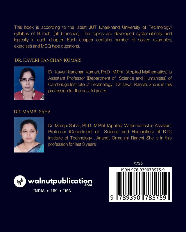 This book is according to the latest JUT (Jharkhand University of Technology) syllabus of B.Tech. (all branches). The topics are developed systematically and logically in each chapter. Each chapter contains number of solved examples, exercises and MCQ type questions.