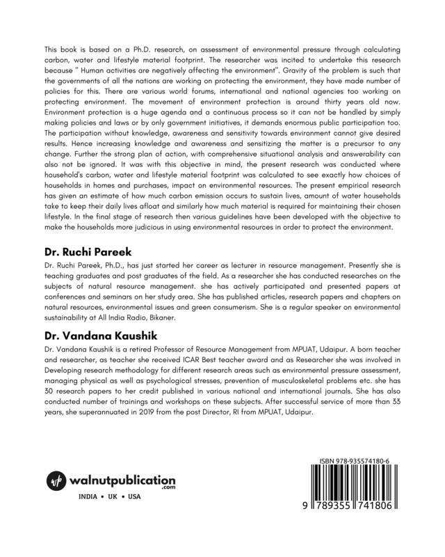 This book is based on a Ph.D. research, on the assessment of environmental pressure through calculating carbon, water, and lifestyle material footprints. The researcher was incited to undertake this research because ‘Human activities are negatively affecting the environment’.