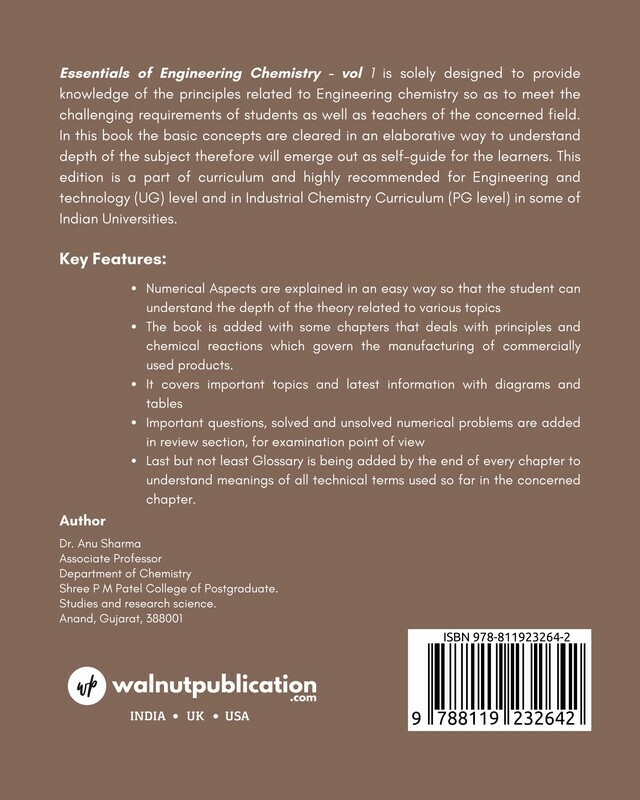 Essentials of Engineering Chemistry- Vol. 1 is solely designed to provide knowledge of the principles related to Engineering chemistry so as to meet the challenging requirements of students as well as teachers of the concerned field.