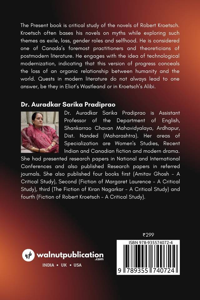 The Present book is critical study of the novels of Robert Kroetsch. Kroetsch often bases his novels on myths while exploring such themes as exile, loss, gender roles and selfhood. He is considered one of Canada’s foremost practitioners and theoreticians of postmodern literature.