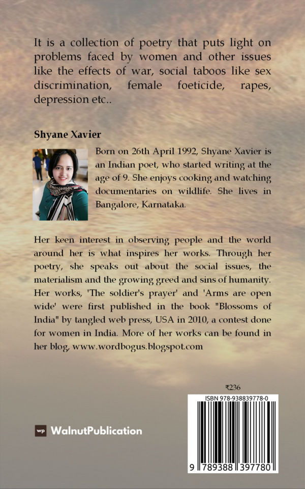 It is a collection of poetry that puts light on problems faced by women and other issues like the effects of war, social taboos like sex discrimination, female foeticide, rapes, depression etc..
