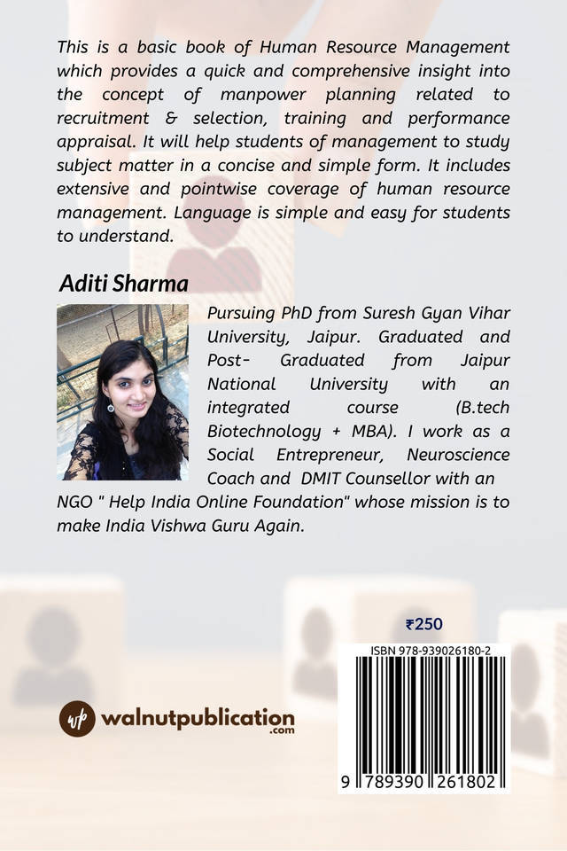 This is a basic book of Human Resource Management which provides a quick and comprehensive insight into the concept of manpower planning related to recruitment & selection, training and performance appraisal.
