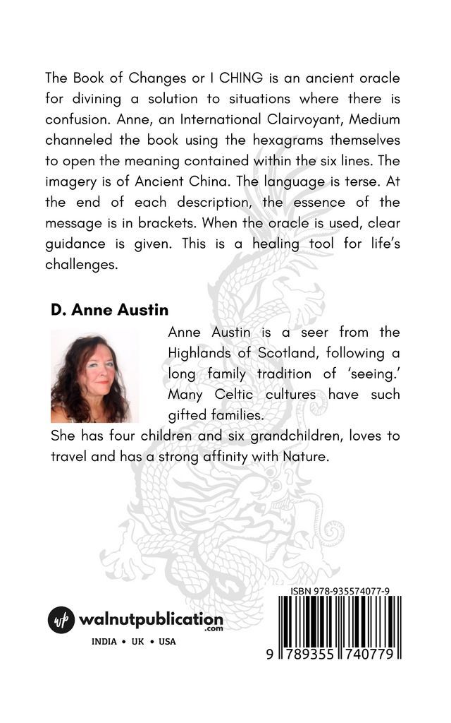 Anne, an International Clairvoyant, Medium channeled the book using the hexagrams themselves to open the meaning contained within the six lines.