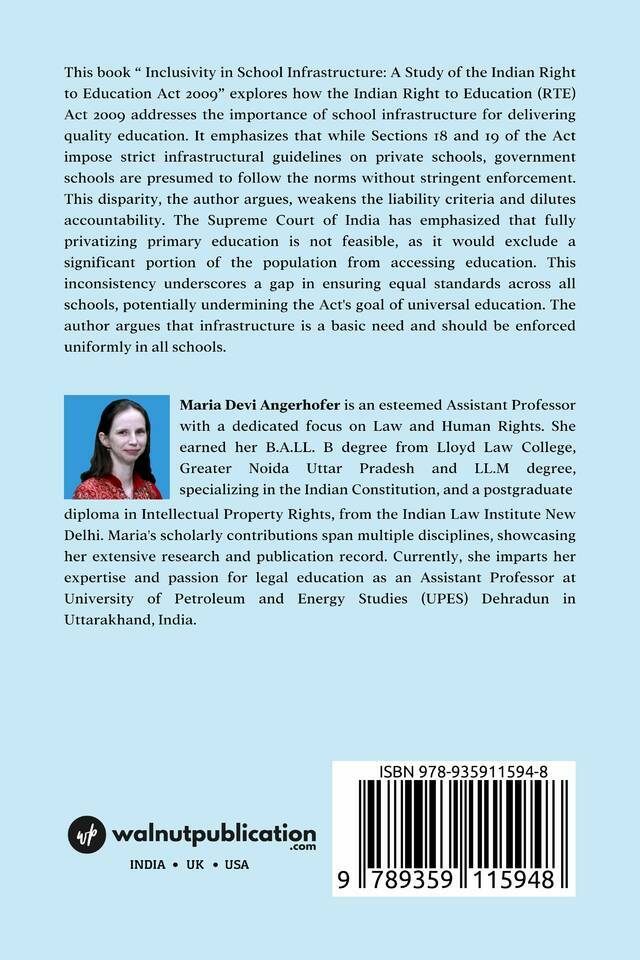 The book “Inclusivity in School Infrastructure: A Study of the Indian Right to Education Act 2009” examines the critical role of school infrastructure in quality education under the RTE Act 2009. It highlights a disparity where private schools face strict requirements, while government schools lack rigorous enforcement, undermining accountability. The Supreme Court emphasizes the impracticality of fully privatizing primary education, revealing gaps in equal standards that threaten the Act’s objective of universal education. The author advocates for uniform infrastructure enforcement across all schools.