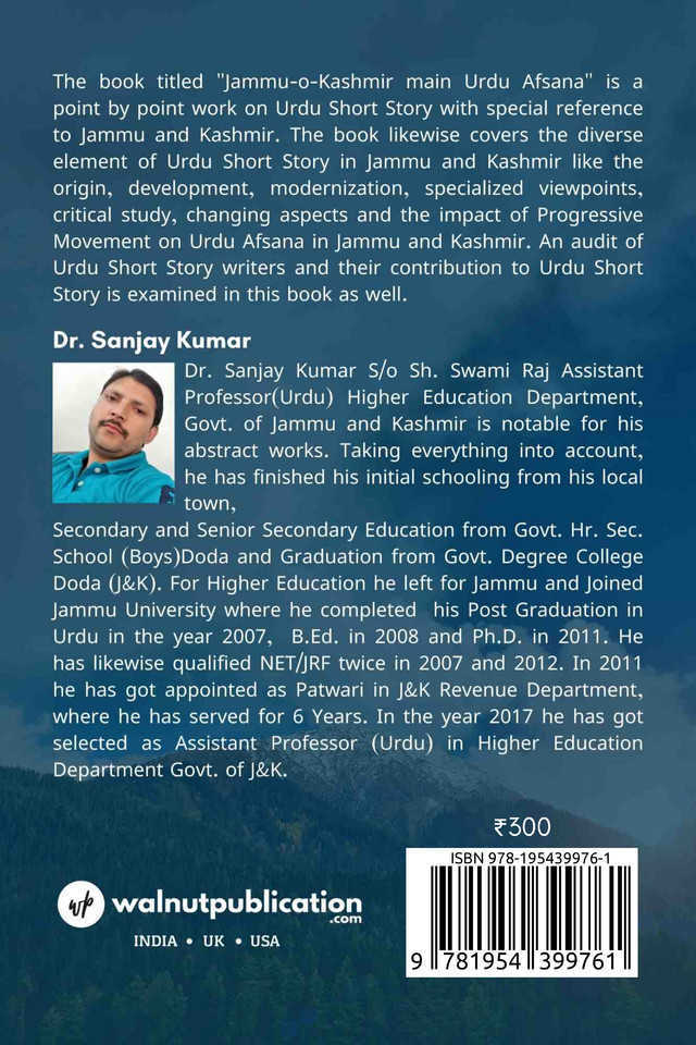 The book titled “Jammu-o-Kashmir main Urdu Afsana” is a point by point work on Urdu Short Story with special reference to Jammu and Kashmir.