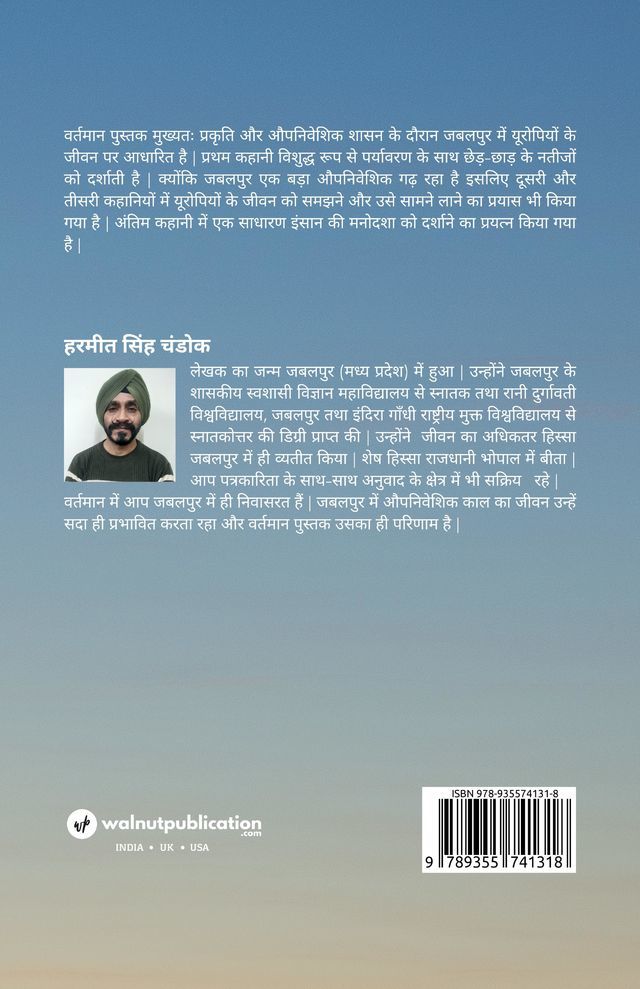 The present book is largely based on nature and the life-style of the Europeans during colonial administration in Jabalpur. The first story reflects the consequences of interfering with nature. Because Jabalpur had been a strong colonial base, second and the third stories are an effort to understand and bring into light the lives of the Europeans during that time. The fourth story makes an effort to show the temperament of an ordinary human being.