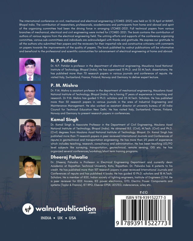 The international conference on civil, mechanical and electrical engineering (LTCMEE-2021) was held on 12-13 April at MANIT, Bhopal India.