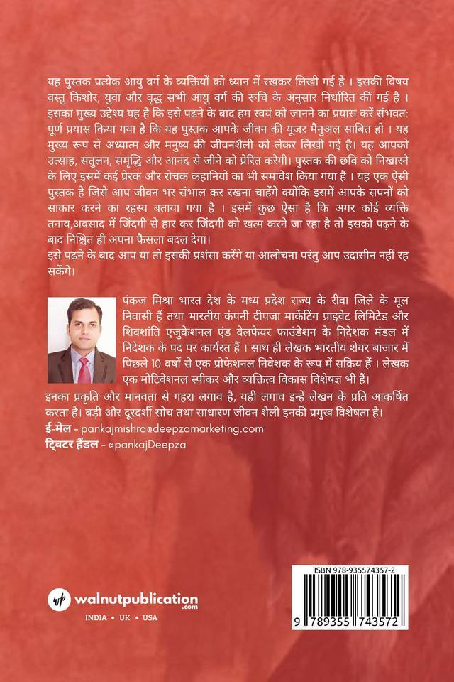 यह पुस्तक प्रत्येक आयु वर्ग के व्यक्तियों को ध्यान में रखकर लिखी गई है । इसकी विषय वस्तु किशोर, युवा और वृद्ध सभी आयु वर्ग की रूचि के अनुसार निर्धारित की गई है । इसका मुख्य उद्देश्य यह है कि इसे पढ़ने के बाद हम स्वयं को जानने का प्रयास करें संभवत: पूर्ण प्रयास किया गया है कि यह पुस्तक आपके जीवन की यूजर मैनुअल साबित हो ।