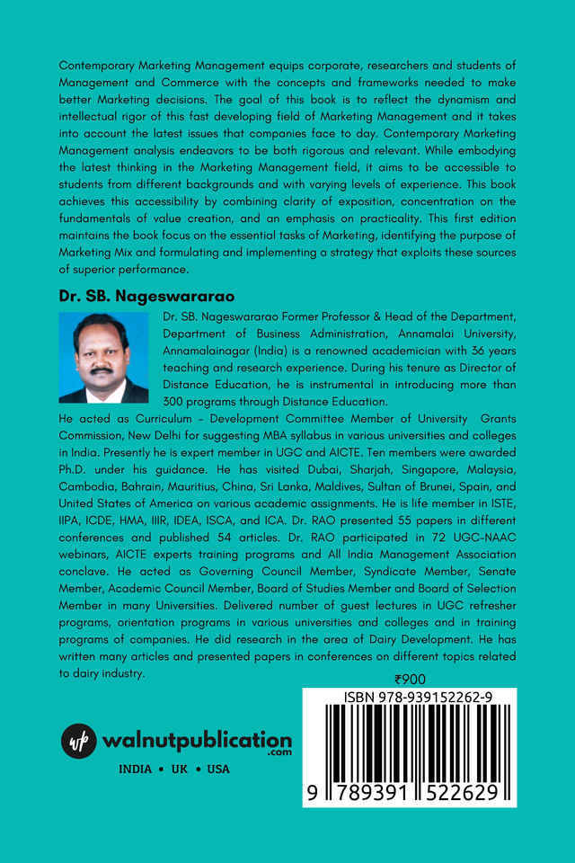 Contemporary Marketing Management equips corporate, researchers and students of Management and Commerce with the concepts and frameworks needed to make better Marketing decisions.