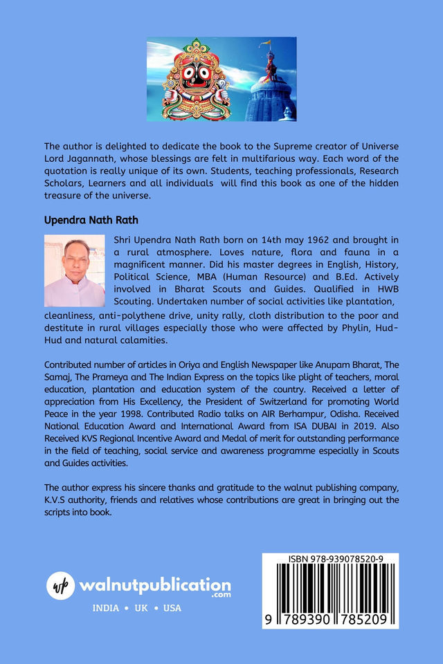 The author is delighted to dedicate the book to the Supreme creator of Universe Lord Jagannath, whose blessings are felt in multifarious way. Each word of the quotation is really unique of its own. Students, teaching professionals, Research Scholars, Learners and all individuals will find this book as one of the hidden treasure of the universe.