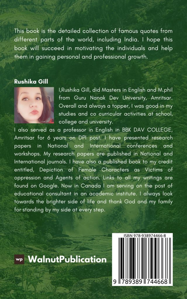 This book is the detailed collection of famous quotes from different parts of the world, including India. I hope this book will succeed in motivating the individuals and help them in gaining personal and professional growth.