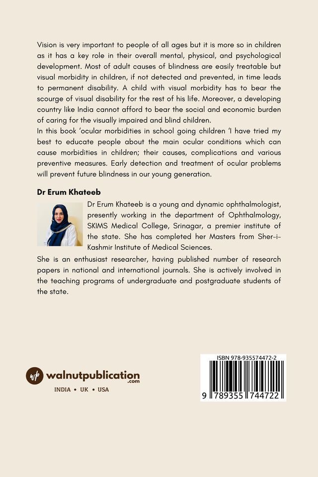 In “Ocular Morbidities In School Going Children,” the author sheds light on the critical importance of vision in the development of children, both mentally and physically. The book aims to educate readers about the main ocular conditions that can cause morbidities in children, their causes, complications, and preventive measures. Early detection and treatment of these ocular problems can prevent future blindness and alleviate the social and economic burden on society.