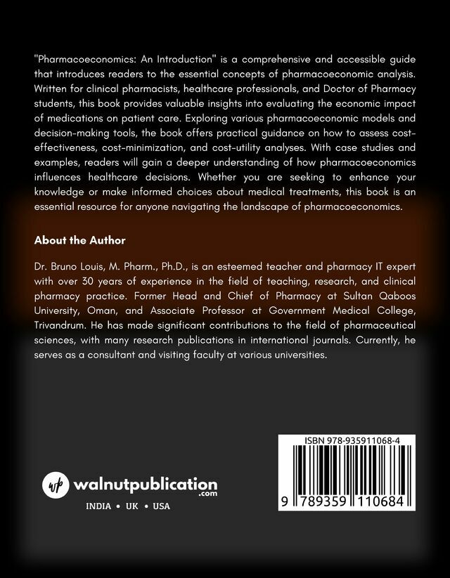 “Pharmacoeconomics: An Introduction” is a comprehensive and accessible guide that introduces readers to the essential concepts of pharmacoeconomic analysis. Written for clinical pharmacists, healthcare professionals, and Doctor of Pharmacy students, this book provides valuable insights into evaluating the economic impact of medications on patient care.