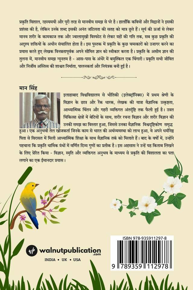 प्रकृति विशाल, रहस्यमयी और पूरी तरह से मानवीय समझ से परे है। हालाँकि कवियों और विद्वानों ने इसकी प्रशंसा की है, लेकिन उनके शब्द इसकी अनंत जटिलता की सतह को मात्र छूते हैं। सूर्य की ऊर्जा से लेकर मानव शरीर के कामकाज तक और ज्वालामुखी विस्फोट से लेकर ग्रहों की गति तक, सब कुछ प्रकृति की अदृश्य शक्तियों के अधीन संचालित होता है। इस पुस्तक में प्रकृति के कुछ चमत्कारों को उजागर करने का प्रयास करते हुए लेखक विनम्रतापूर्वक अपने सीमित ज्ञान को स्वीकार करता है। प्रकृति के असीम ज्ञान की तुलना में, मानवीय समझ न्यूनतम है – आस-पास के अंधेरे में बमुश्किल एक चिंगारी। प्रकृति सभी जीवित और निर्जीव अस्तित्व की शाश्वत निर्माता, पालनकर्ता और नियंत्रक बनी हुई है।