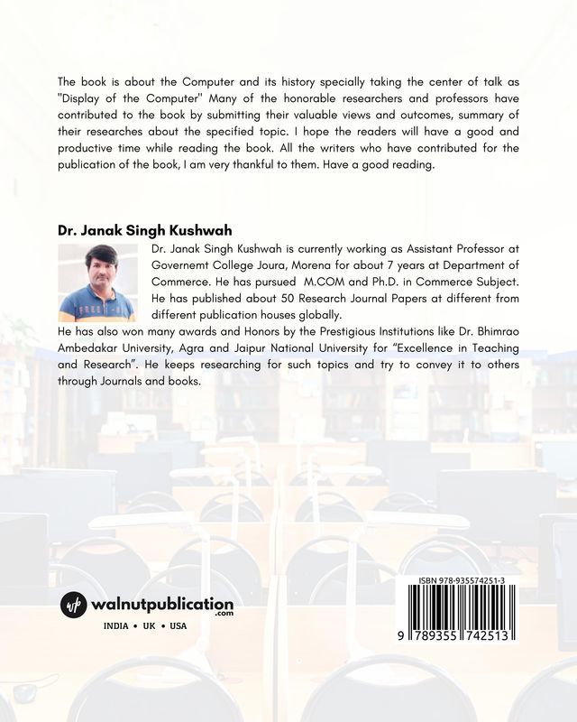 The book is about the Computer and its history specially taking the center of talk as “Display of the Computer” Many of the honourable researchers and professors have contributed to the book by submitting their valuable views and outcomes, summary of their researches about the specified topic. I hope the readers will have a good and productive time while reading the book. All the writers who have contributed for the publication of the book, I am very thankful to them. Have a good reading.