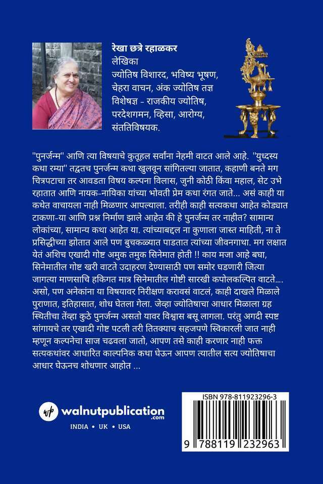 “Punarjanma-Ek Sudacha Pravas” delves deep into the enigma of reincarnation, presenting stories that blur the lines between reality and fiction. It weaves together true stories, fictionalizing them only slightly, and then employs astrology to discern the truths within. It’s a captivating journey that questions the accepted and explores the inexplicable.