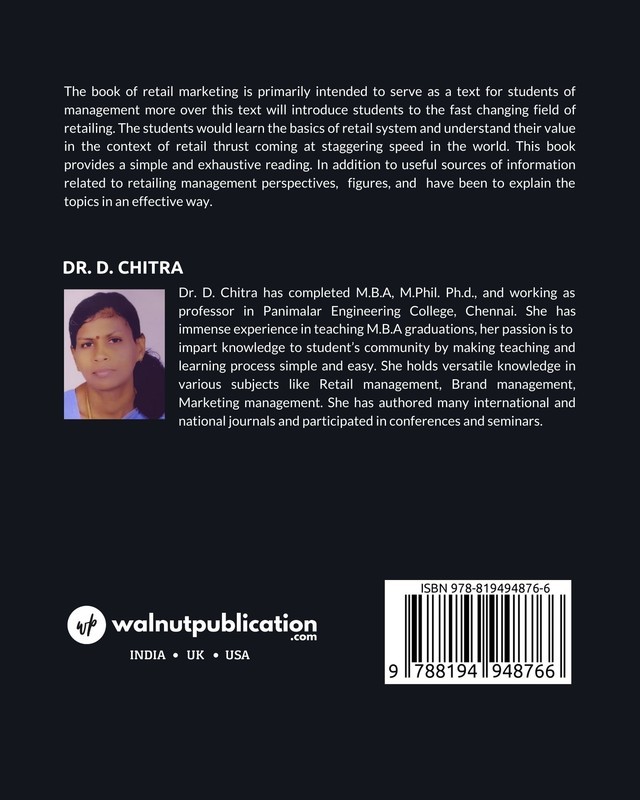 The book of retail marketing is primarily intended to serve as a text for students of management more over this text will introduce students to the fast changing field of retailing. The students would learn the basics of retail system and understand their value in the context of retail thrust coming at staggering speed in the world.