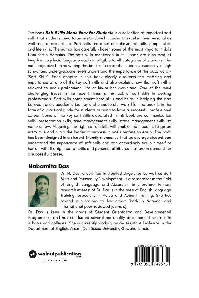 The book Soft Skills Made Easy For Students is a collection of important soft skills that students need to understand well in order to excel in their personal as well as professional life. Soft skills are a set of behavioural skills, people skills and life skills. The author has carefully chosen some of the most important skills from these domains. The soft skills mentioned in this book are discussed at length in very lucid language easily intelligible to all categories of students. The main objective behind writing this book is to make the students especially in high school and undergraduate levels understand the importance of this buzz word – ‘Soft Skills’. Each chapter in this book clearly discusses the meaning and importance of one of the key soft skills and also explains how that soft skill is relevant to one’s professional life at his or her workplace. One of the most challenging issues in the recent times is the lack of soft skills in working professionals. Soft skills complement hard skills and helps in bridging the gap between one’s academic journey and a successful work life. The book is in the form of a practical guide for students aspiring to have a successful professional career. Some of the key soft skills elaborated in this book are communication skills, presentation skills, time management skills, stress management skills, to name a few. Acquiring the right set of skills will enable the students to go an extra mile and climb the ladder of success in one’s profession easily. The book has been designed in a student-friendly manner so that an average student can understand the importance of soft skills and can accordingly equip himself or herself with the right set of skills and personal attributes that are in demand for a successful career.