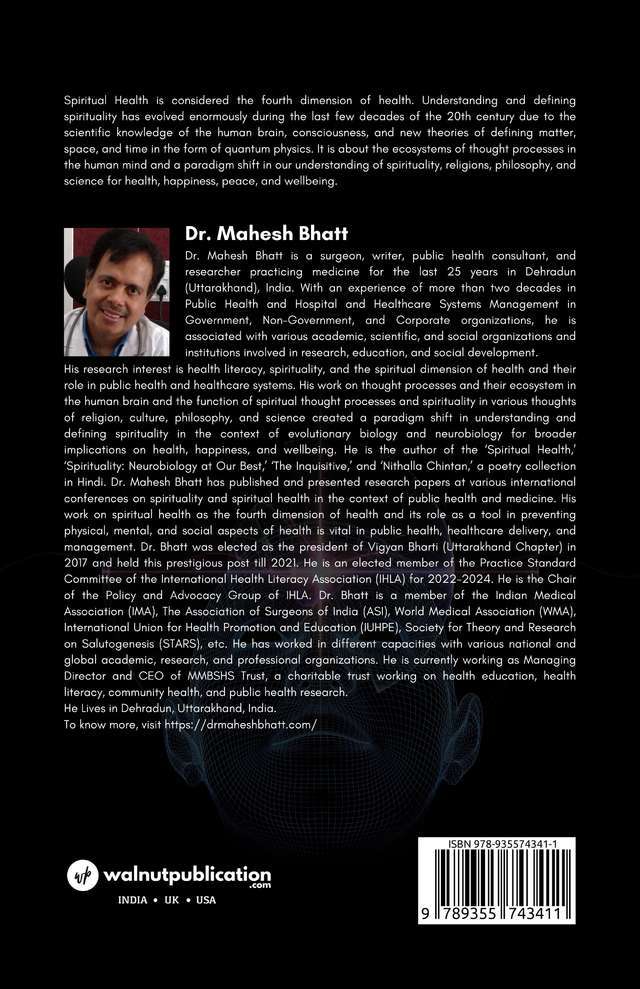 Spiritual Health is considered the fourth dimension of health. Understanding and defining spirituality has evolved enormously during the last few decades of the 20th century due to the scientific knowledge of the human brain, consciousness, and new theories of defining matter, space, and time in the form of quantum physics. It is about the ecosystems of thought processes in the human mind and a paradigm shift in our understanding of spirituality, religions, philosophy, and science for health, happiness, peace, and well-being.