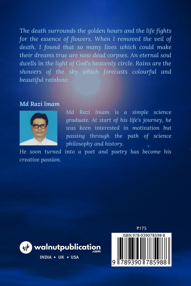 The death surrounds the golden hours and the life fights for the essence of flowers. When I removed the veil of death I found that so many lives which could make their dreams true are now dead corpses. An eternal soul dwells in the light of God’s heavenly circle. Rains are the showers of the sky which forecasts colourful and beautiful rainbow.