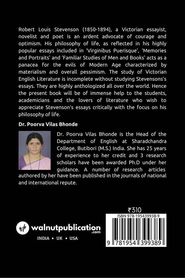 Robert Louis Stevenson (1850-1894), a Victorian essayist, novelist and poet is an ardent advocate of courage and optimism. The study of Victorian English Literature is incomplete without studying Stevensons’s essays.
