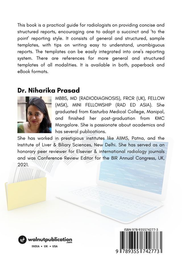 This book is a practical guide for radiologists on providing concise and structured reports, encouraging one to adopt a succinct and ‘to the point’ reporting style. It consists of general and structured, sample templates, with tips on writing easy to understand, unambiguous reports. The templates can be easily integrated into one’s reporting system. There are references for more general and structured templates of all modalities. It is available in both, paperback and eBook formats.
