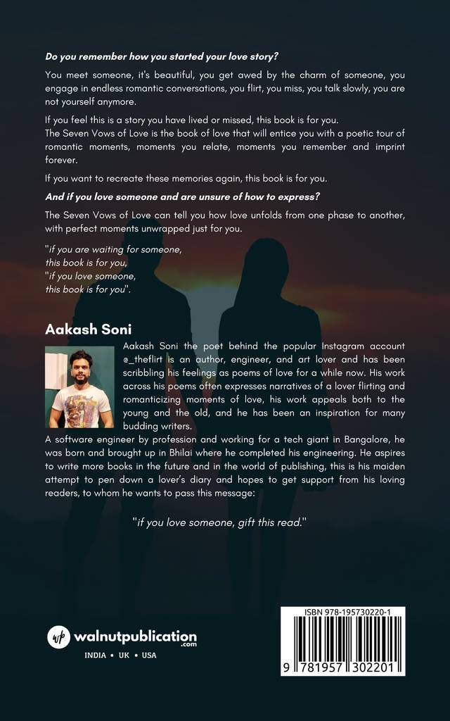 The Seven Vows of Love is the book of love that will entice you with a poetic tour of romantic moments, moments you relate, moments you remember and imprint forever.