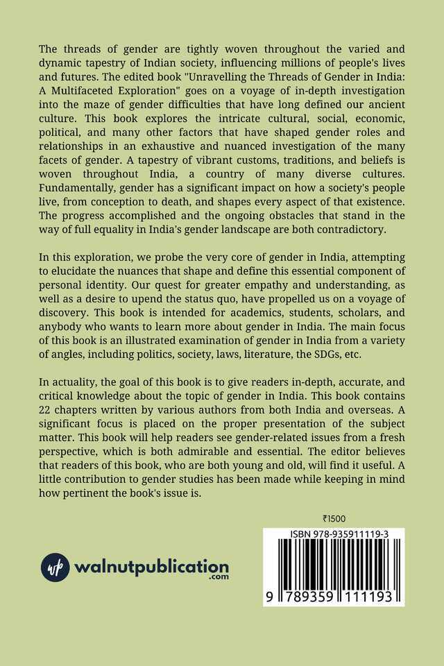 Embark on a journey through India’s intricate gender tapestry with “Unraveling the Threads of Gender in India: A Multifaceted Exploration”. From societal norms and politics to literature and the Sustainable Development Goals, this book provides a comprehensive look at the progress and challenges in India’s gender landscape.