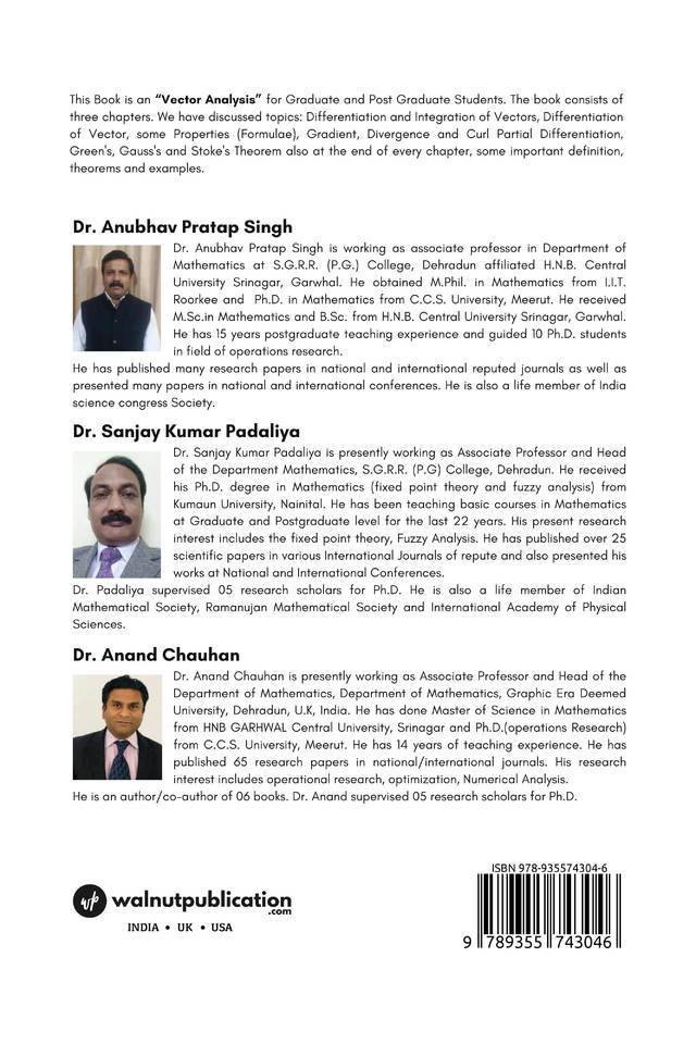 This Book is an “Vector Analysis” for Graduate and Post Graduate Students.