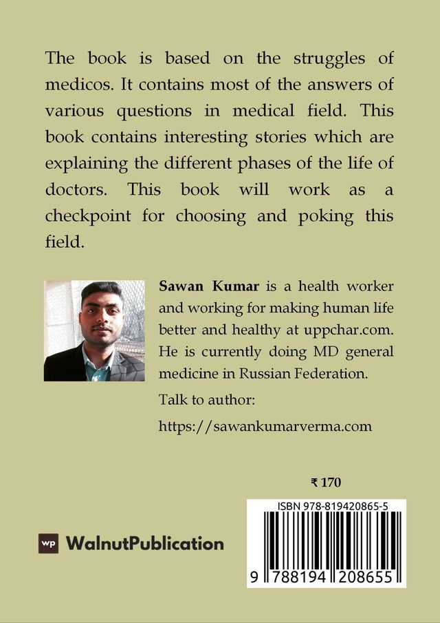 The book is based on the struggles of medicos. It contains most of the answers of various questions in medical field. This book contains interesting stories which are explaining the different phases of the life of doctors. This book will work as a checkpoint for choosing and poking this field.