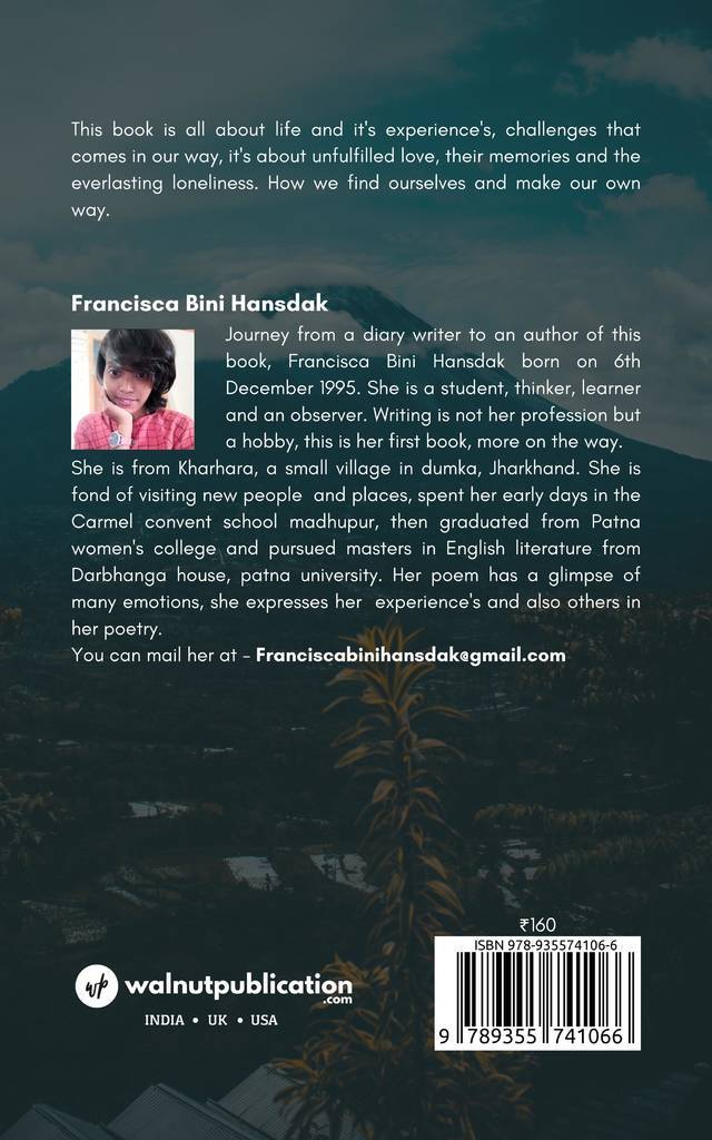This book is all about life and it’s experience’s, challenges that comes in our way, it’s about unfulfilled love, their memories and the everlasting loneliness. How we find ourselves and make our own way.