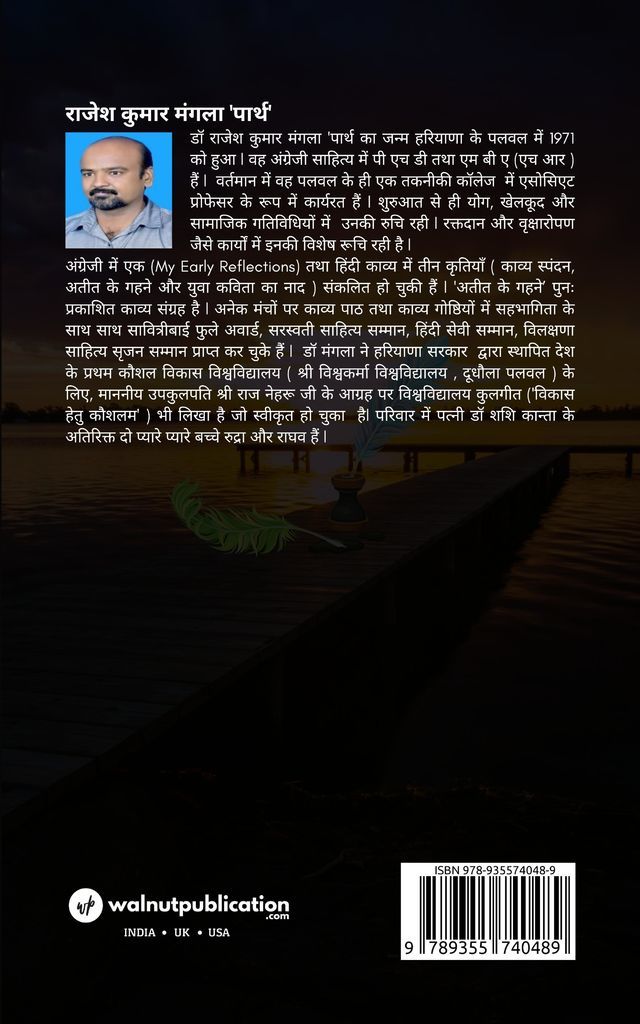 Yuva Kavita Ka Naad’ is the poet’s ironical reflection of various social, ethical and political development of human being in the present society. Poems in the poetic collection are written in traditional metrical patterns and blank verse style on various issues of prevailing rigid beliefs, baseless traditions and blind superstitions in the society. Issues like education, literature, art, culture, health, and administration etc., addressed in sensitive manner, are merely the mental depiction of the poet with a view that corruption, dishonesty, injustice, hypocrisy are the major impediments in the growth and development of ongoing healthy society. ‘Yuva Kavita Ka Naad’, is the obvious reflection of the philosophy of inside sensitive feelings of a young poet in which natural spontaneity, mystery and beauty of nature are woven along with sensitive depiction of love for society, patriotism, morality and sensitivity of relations.